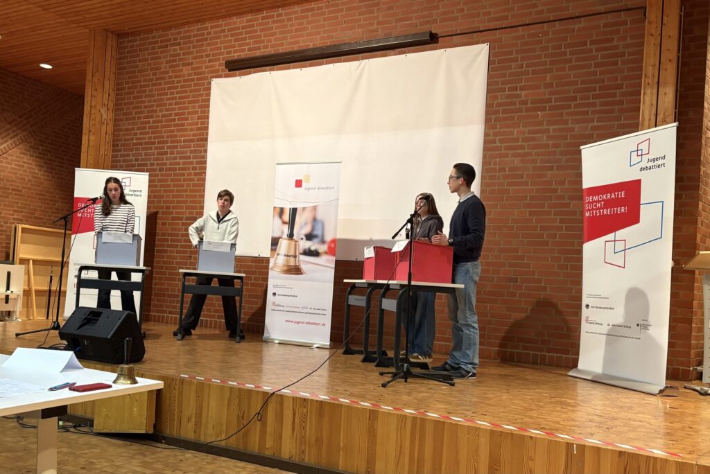 Somit durften Mateo Nikic und Ole Schierhorn (beide Q1) das Stift in der Altersgruppe 2 vertreten. In der Vorrunde debattierten sie zunächst die Frage, ob Lokalzeitungen eine staatliche Förderung erhalten sollen. In der zweiten Debatte ging es darum, ob eine Kontaktgebühr für Arztbesuche erhoben werden soll. Während Mateo bei seiner zweiten Teilnahme einen Mittelfeldplatz belegte, gelang Ole als zweitem Nachrücker der Sprung ins Finale. In einer sehr ausgeglichenen Debatte zur Frage, ob Wahlumfragen im Vorfeld von Wahlen verboten werden sollen, belegte er am Ende den vierten Platz, während sich Roman Eggert und Jonathan Müller (beide Ville-Gymnasium Erftstadt) über die beiden Tickets für die Landesqualifikation freuen durften.