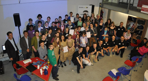 In der Teildisziplin „Projekt-Präsentation“ zeigten wir, wie letztes Jahr bereits, Kreativität und Einfallsreichtum. Noch im Zug nach Aachen verfeinerten wir unsere Kostüme und verwandelten uns, mithilfe von Kartoffelsäcken und viel Haarspray, in echte „Stiftstoors“! Im Roboscope angekommen spielten wir, anstatt nervös zu sein, mit der Konkurrenz vom Wirteltor Kicker. Selbst in den anderen Wettbewerbsdisziplinen klappte diesmal alles noch besser als in den Proben. In unseren Robbitsäcken und mit der makellosen Gruppenpräsentation erreichten wir die Herzen der Jury. Das zeigte sich auch in der Bewertung: 1. Platz in dieser Kategorie! Juhuu!!!