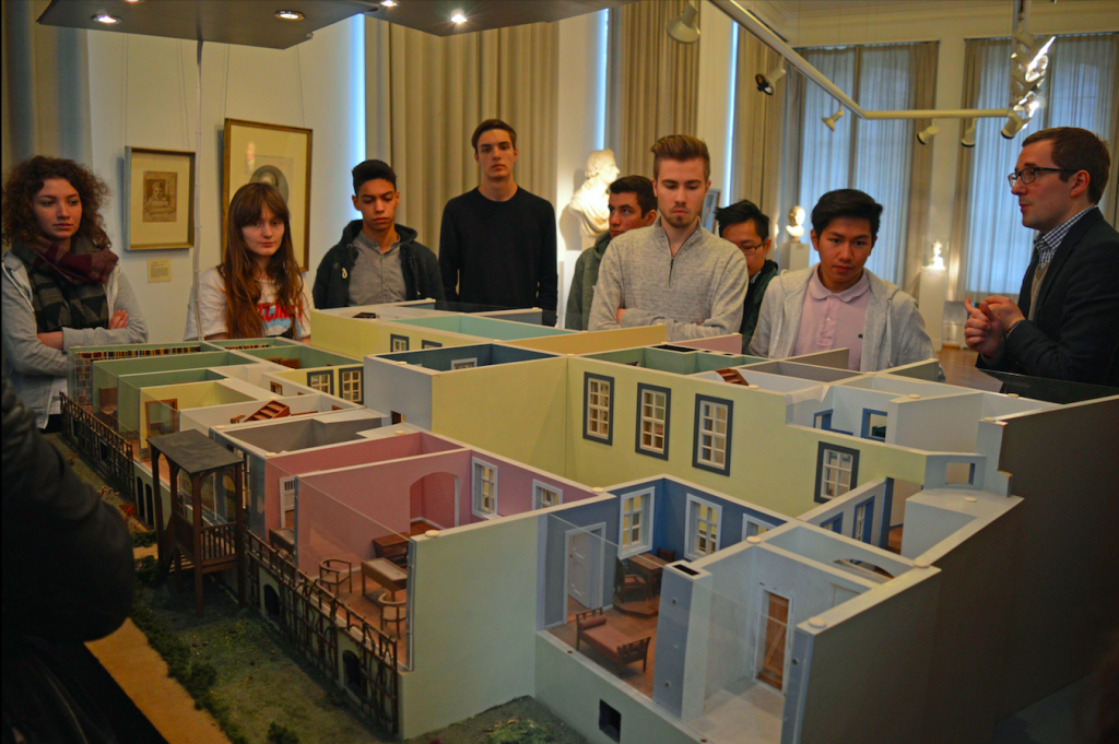 Das Düsseldorfer Goethe-Museum und das Heinrich-Heine-Institut waren Zielpunkte einer Exkursion, die zwei Deutsch-Leistungskurse (Jgst. Q1 und Q2) und ein Grundkurs Deutsch (Q2) am 25. Januar 2017 gemeinsam mit den Fachlehrern Dr. Achim Jaeger und Matthias Lochner unternahmen.