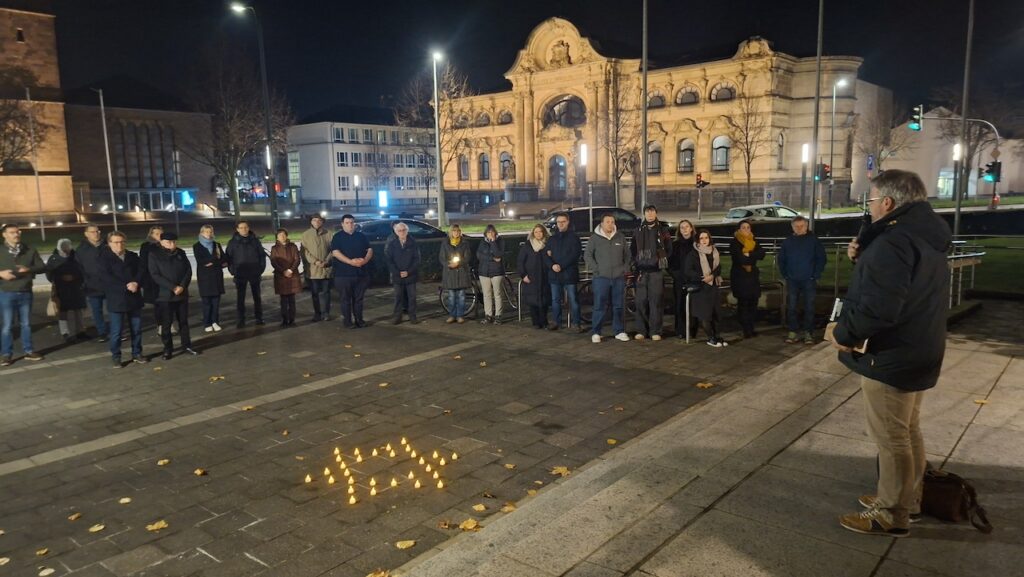 Der 9. November ist bekannt als der „Schicksalstag der Deutschen“. Es ist ein Datum, an welchem Geschichte geschrieben wurde und nicht nur, wie beim Fall der Berliner Mauer 1989, im positiven Sinne, denn zugleich ist dieser Tag auch ein Symbol für einige der dunkelsten Kapitel unserer Vergangenheit, den Hitler-Putsch 1923 und vor allem die Reichspogromnacht 1938, an welche wir mit unserer Mahnwache erinnerten.