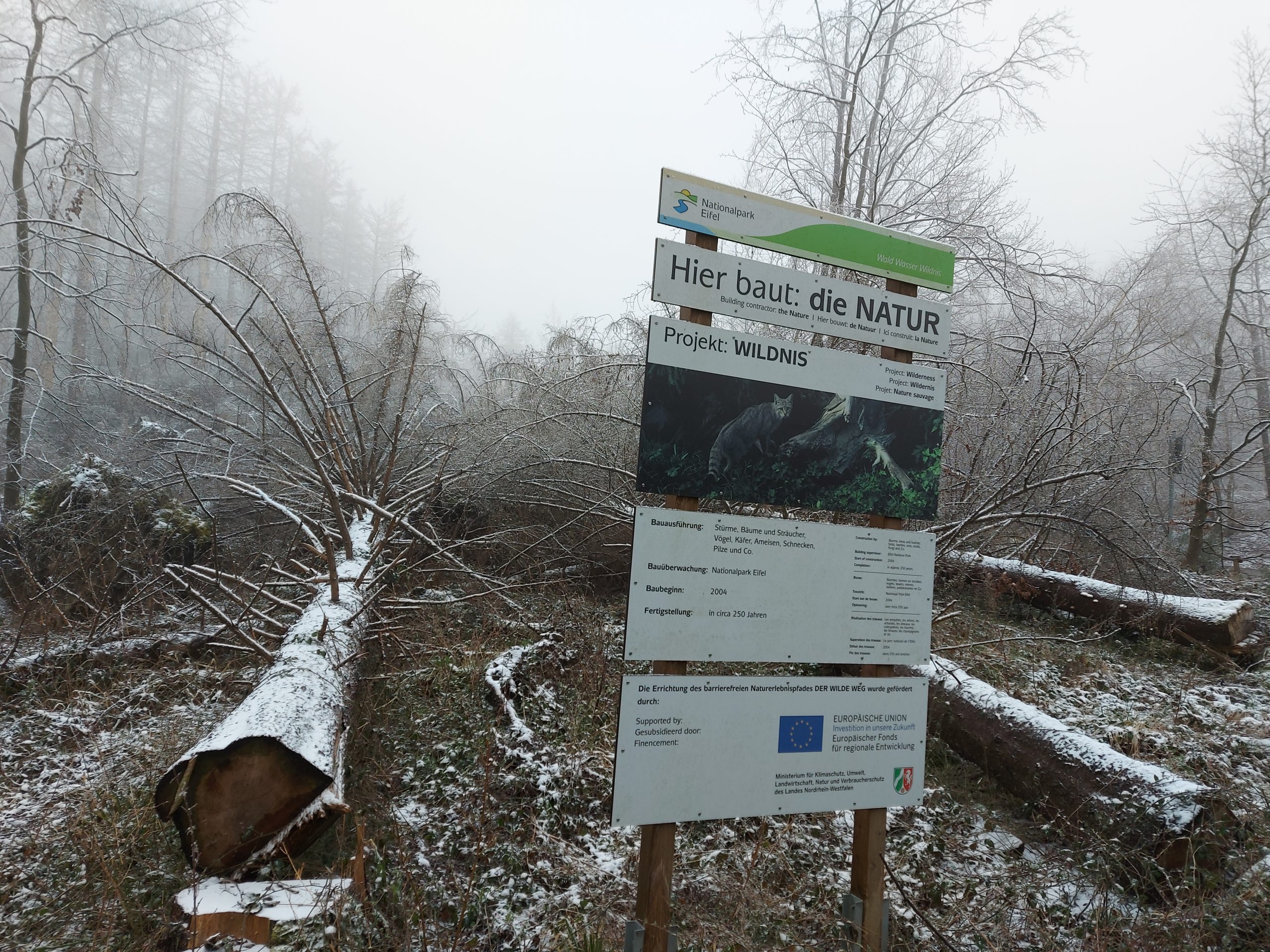 Am Freitag, dem 01.04.22, unternahmen die beiden Ökologie-Kurse des Differenzierungsbereiches der Jahrgangsstufe 9 (Bt/Vau) – nach erfolgter Corona-Testung – pünktlich zur ersten Stunde eine ausgedehnte Exkursion in den Nationalpark Eifel zum Höhenzug des Kermeter (Heimbach). Nachdem wir uns in der Jahrgangsstufe 8 weitgehend online mit dem Nationalpark beschäftigen mussten, wollten wir – im recht kurzen zweiten Halbjahr – nun vor den Osterferien doch noch die Exkursion in den Nationalpark unter dem Motto „Ankommen nach Corona“ nachholen. Hatte am Dienstag die Klasse 8a noch gutes sonniges Wetter auf Vogelsang IP, so gab es heute am Freitag die „Rückkehr des Winters“ mit frostigen Temperaturen und Schnee. Die Schülerinnen und Schüler waren zwar mit warmer Kleidung versorgt, aber die Kälte führte natürlich zum Verschwinden vieler Tierarten (Insekten), die man ansonsten hätte sehen können – schade.