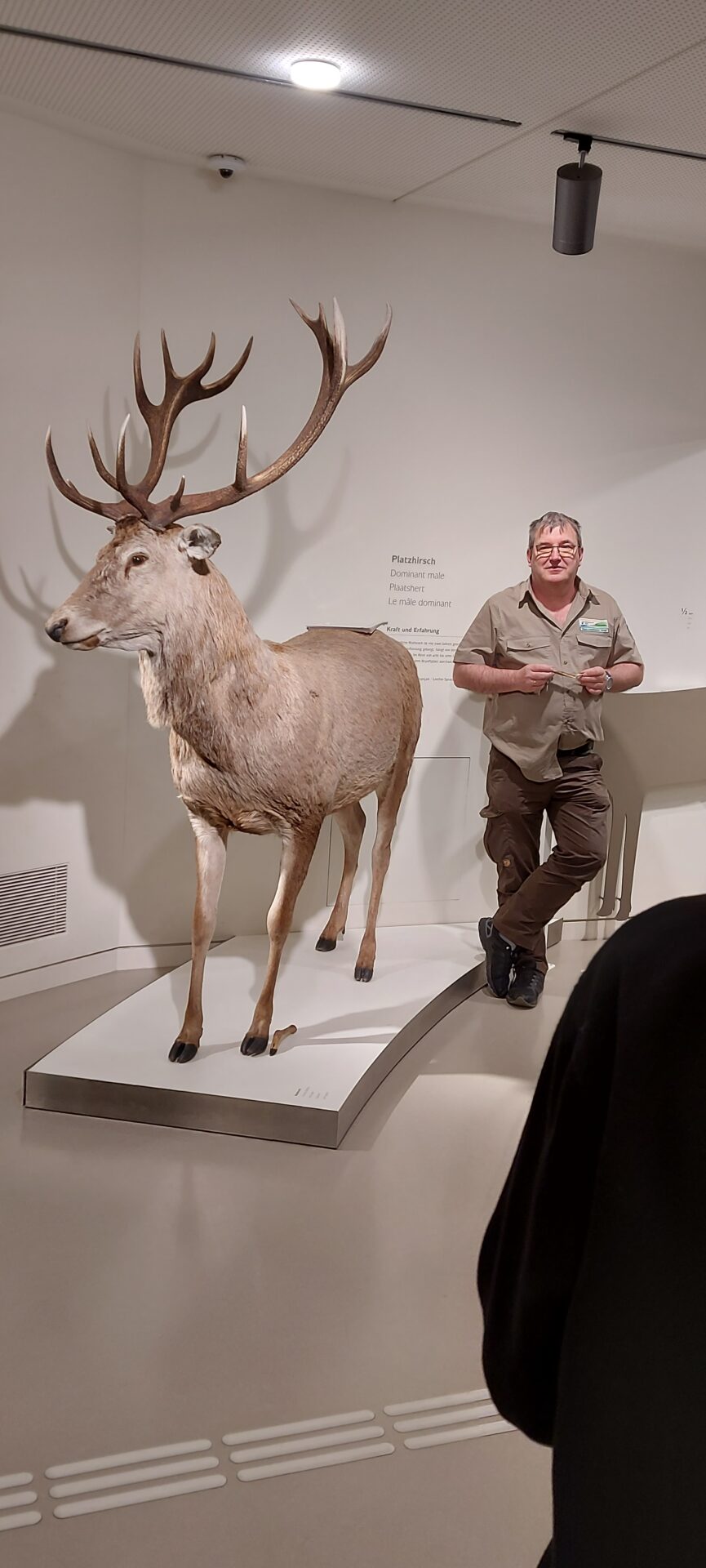Ein erster kleiner Rundgang der Gruppe führte zum Panoramablick über Urftsee und Kermeter. Ein kurzer Überblick über das historische Erbe auf Vogelsang fand reges Interesse. Aber nicht die Geschichte stand im Vordergrund des heutigen Tages, sondern auch die Natur im Nationalpark. Angekündigt war uns die Ausstellung auf der Webseite (s .o.) wie folgt: „Da gibt es moderne Inszenierungen und eine ansprechende Atmosphäre, Stationen zum Ausprobieren und Spielen, Tastmodelle und Tierpräparate zum Anfassen, Pflanzendüfte zum Schnuppern, Hörspiele und Tiergeräusche zum Lauschen. Und viele neue Perspektiven, die den Blick auf die Natur schärfen.“