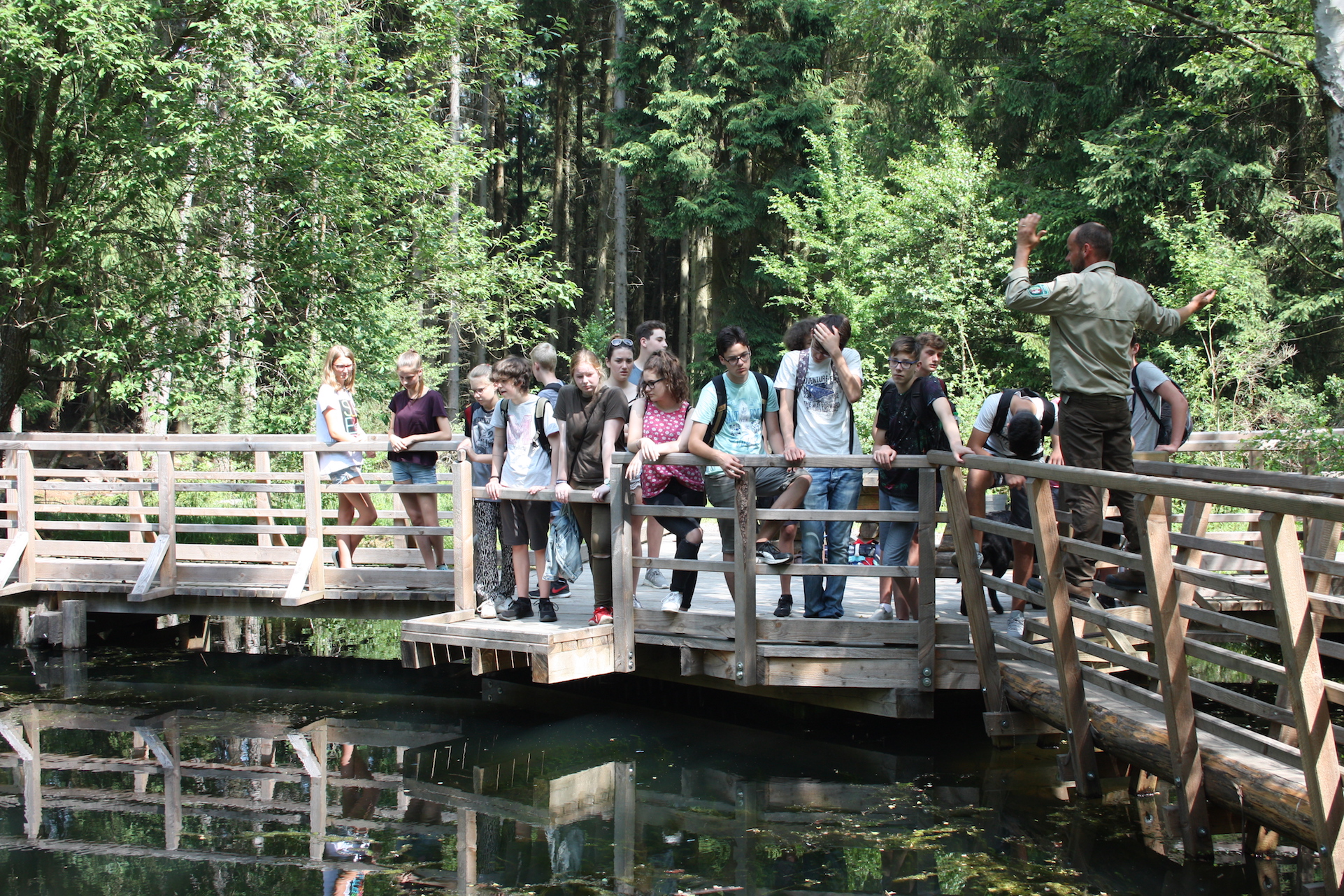 Für den Juni 2017 hatte der Ökologie-Kurs der Jahrgangstufe 8 von Herrn Bünten wieder seinen obligatorischen Tag in der Wildniswerkstatt Düttling des Nationalparks Eifel geplant. Im Zuge der Teilnahme an den Zertifizierungen zur Nationalparkschule Eifel und Schule der Nachhaltigkeit wurde dieser Projekttag inzwischen fest in das Curriculum im Fachbereich Ökologie der Fachschaft Biologie des Stiftischen Gymnasiums integriert. Im aktuellen Sommerhalbjahr 2017 haben wir uns ausführlich mit der Flora und Fauna des Waldes und insbesondere der Geschichte und Entwicklung des Nationalparks Eifel beschäftigt.