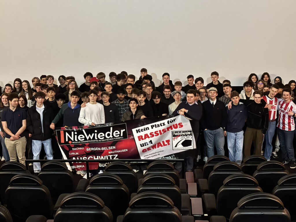 Was also tun, um uns Jugendlichen die Geschichte näher zu bringen? Das haben sich auch unsere Geschichtslehrkräfte und das Lumen-Filmtheater gefragt und so besuchten wir am 3. Februar 2026 als Klassenstufe 10 des Stiftischen Gymnasiums den Film „Der Untergang“ im Rahmen des Projekts „Kino gegen Nazis muss Schule machen“. Ein herzlicher Dank geht an das Dürener „Bündnis gegen Rechts“, das die Eintrittskosten vollständig übernommen hat und besonders an deren Vertreter aus dem Sprecherkreis Jo Ecker, der auch „Pate“ unserer Schule im Rahmen des Projekts „Schule gegen Rassismus“ ist, mit uns den Film angeschaut und zuvor ein Grußwort an uns gerichtet hat.