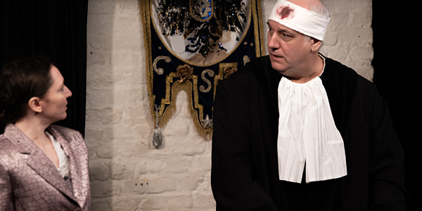 Die Nähe zwischen den Figuren wird in passenden Momenten eingesetzt und verstärkt emotionale Situationen. Gleichzeitig wird die Handlung in alle Richtungen der Bühne gespielt, wodurch der Raum gut genutzt wird. Insgesamt setzt die Inszenierung stark auf Komik. Die abgewiesene Klage und der letztendliche Freispruch aus Mangel an Beweisen werden humorvoll dargestellt, ohne die Kritik an Adam als ungeeignetem Richter zu verlieren. Der Fokus liegt deutlich auf seiner Bloßstellung und der absurden Gerichtssituation.